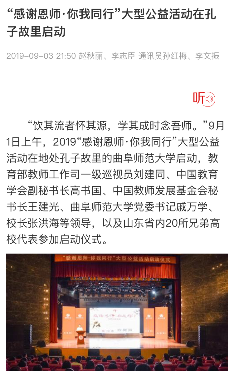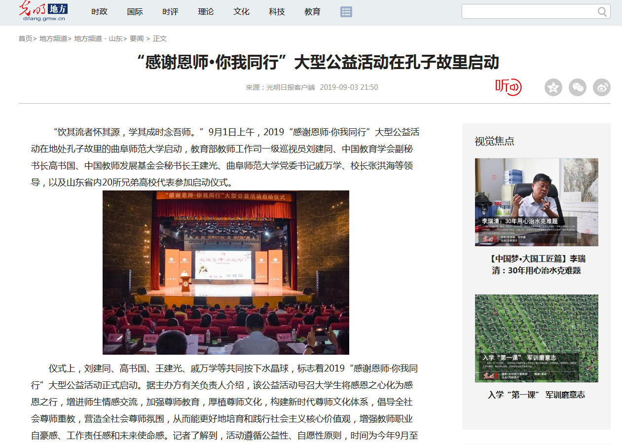 光明网:“感谢恩师·你我同行”大型公益活动在孔子故里启动