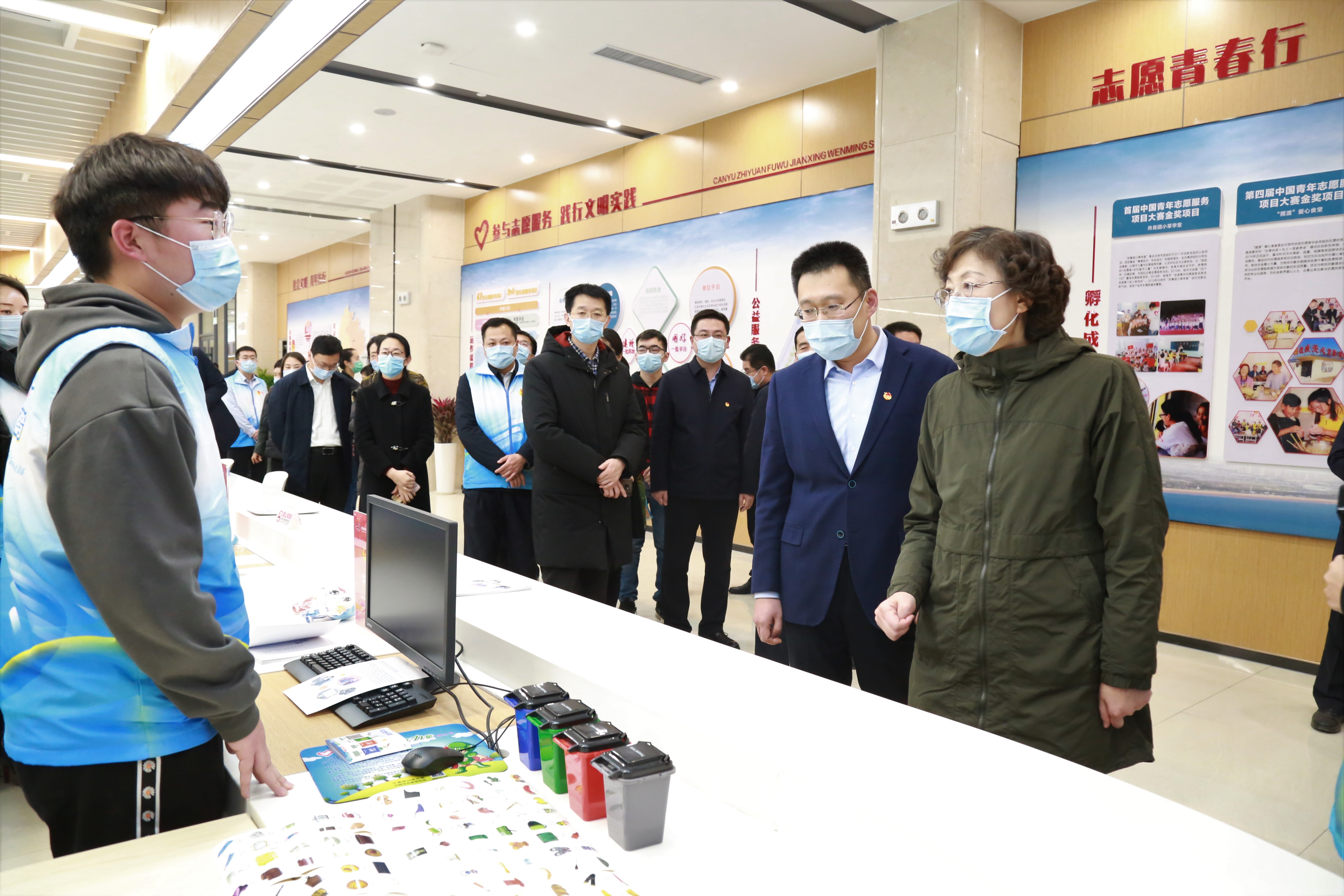 曲阜师大新闻中心讯 近日,我校的两个大学生志愿服务项目首批入驻日照市志愿服务孵化基地。日照市委书记张惠一行视察志愿服务孵化基地时,深入了解了我校志愿服务项目的情况,并与志愿者进行亲切交谈,鼓励青年志愿者发挥专业优势,积极奉献社会、服务城市,并更好地展现“种子”效应,吸引更多力量加入志愿服务队伍,让社会正能量越来越充盈,让日照文明之花开得更加鲜艳。