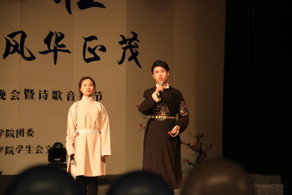 古今文化碰撞,不负韶华征程。晚会将中国传统表演形式与现代流行艺术表现相融合,带来一场精彩绝伦的视听盛宴。古筝与二胡的合奏《美丽的神话》、文武并济的《剑风古韵》、活泼灵动的歌曲串烧等节目,将诗词与音乐结合的韵律之美呈现得淋漓尽致,古风雅韵与活泼动感的有机结合充分展现了文院学子传承经典文化、担当时代使命的积极向上的精神面貌,尽显文学院诗歌音乐节的独特魅力。